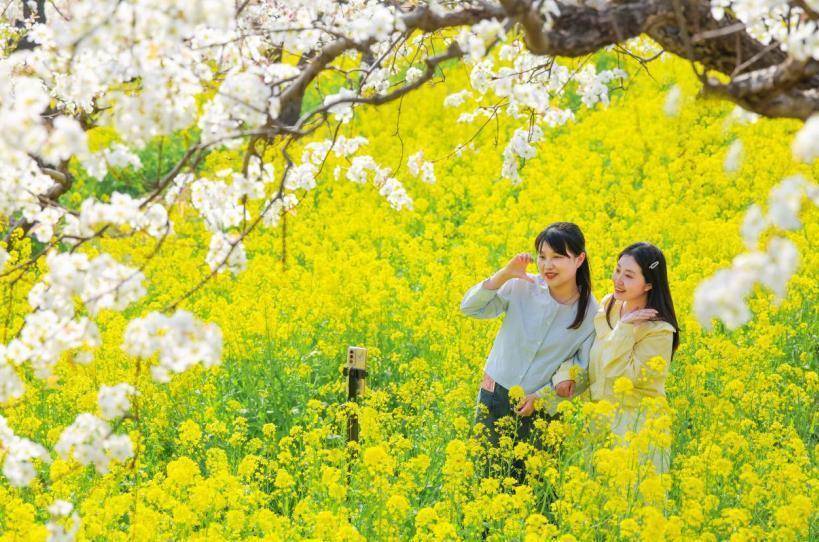 走进七彩和村,千亩戏班绝色佳人。枝端梨斑白如雪,随风摇曳似云涛,与金黄的油菜花海交相衬映,绘就一幅素丽的春日画卷。旅客可沿不雅赏路子溜达:从景区门楼起程,路过戏班、乡愁哀痛、打麦场、磨圆、苹果广场,最终抵达梨树王不雅景点,一说念似锦相伴,暗香浮动。