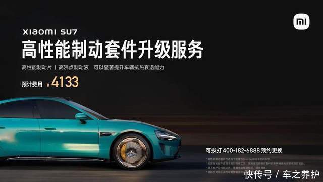 小米SU7凭借着年青动感的外不雅造型和广大的品牌影响力,成为了电车鸿沟的一匹黑马,近期小米官方又再推全新的做事,主打高性能制动套件升级,该项做事包括了高性能制动片和高沸点制动液,官方声称能显耀提高车辆抗热败落才智,整车刹车性能将大幅提高,而升级用度瞻望4133元,接下来咱们就统统望望这项做事值得聘请吗?