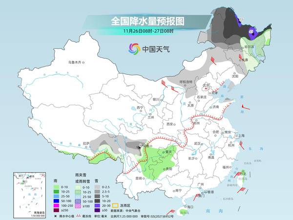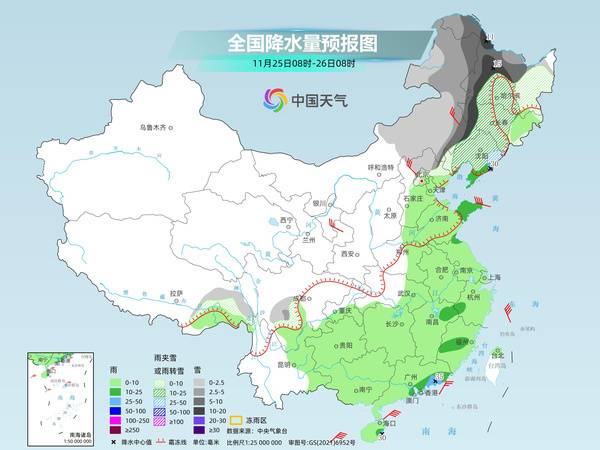中国天气网讯 今天(11月25日)起,寒潮天气将连续东移南下影响我国,降温影响干与主力时段,中东部大部气温将陆续创下半年来新低,其中朔方多地降温幅度大,并伴有大风天气,风寒效应彰着。与此同期,中东部仍有大范围雨雪天气,东北等地降水发展增强。