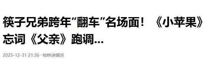 部分起首:各大电视台跨年晚会-微博筷子兄弟跨年“翻车”名形式!《小苹果》忘词《父亲》跑调...-柏林讲文娱刘宇宁跨年名形式!伴奏错成《老鼠爱大米》,他0.1秒救...-玖玖娱剪