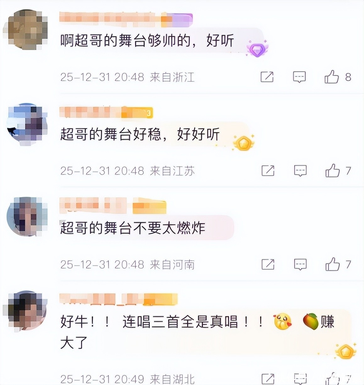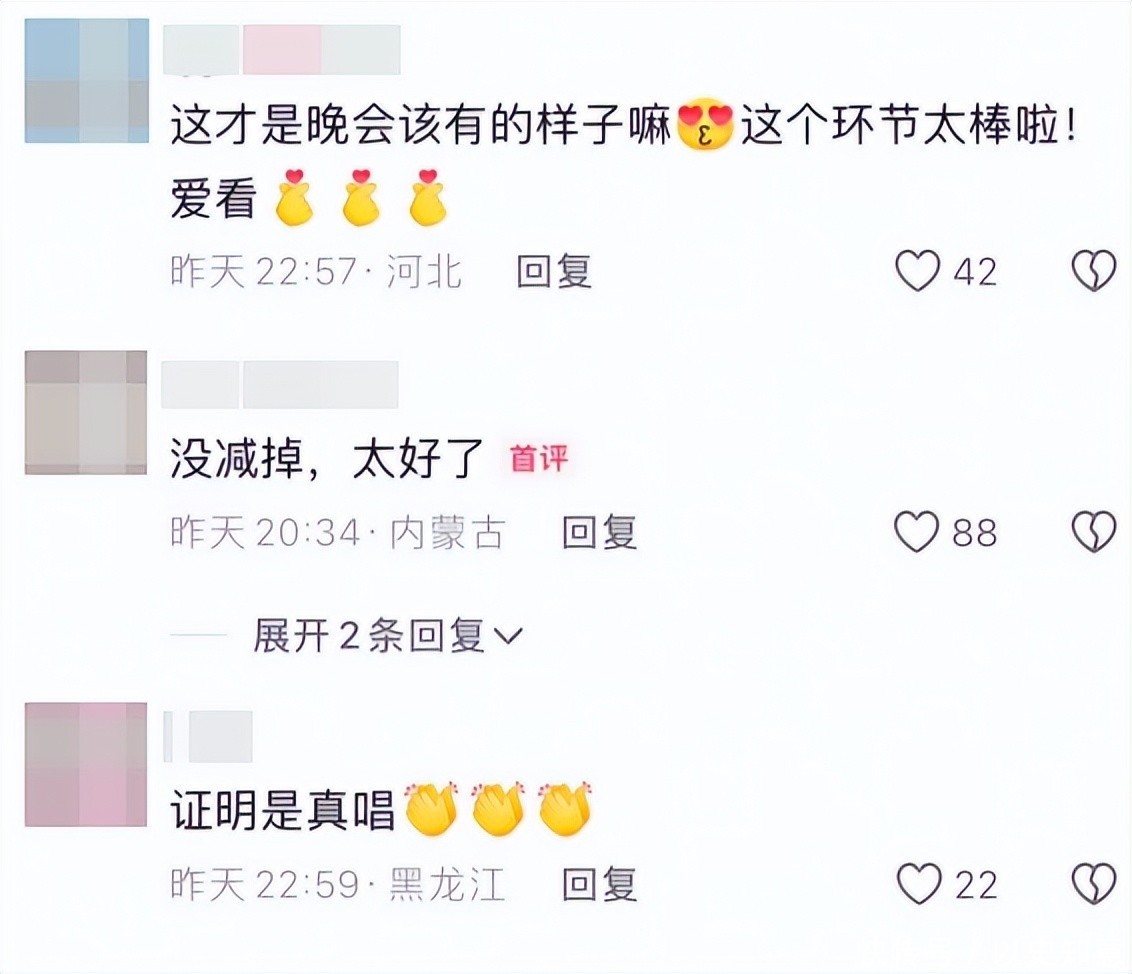 相较于同时出现假唱穿帮、走音破防的窘态形式,不少不雅众直言歌颂: