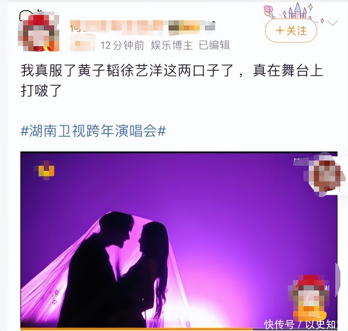 湖南卫视跨年晚会,黄子韬与徐艺洋婚后初次同台献技,甩掉互动遭全网质疑!