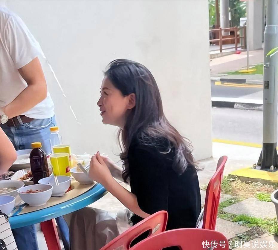 前阵子有网友在新加坡一个吵杂的熟食中心,偶遇了演员朱珠一家三口。