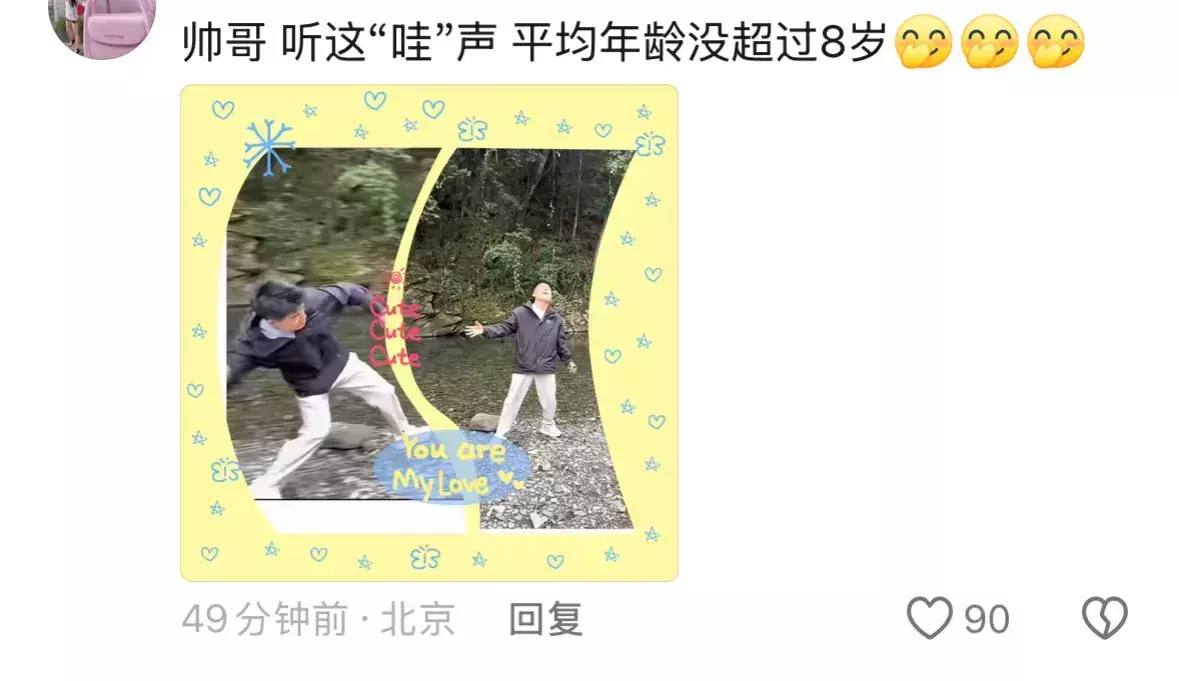 还有东谈主戏弄宇辉,听视频里这一声“哇”,不像是翠花的声息,倒像是平均年事没朝上8岁的孩子们,居然,宇辉照旧孩子王,太可儿了。