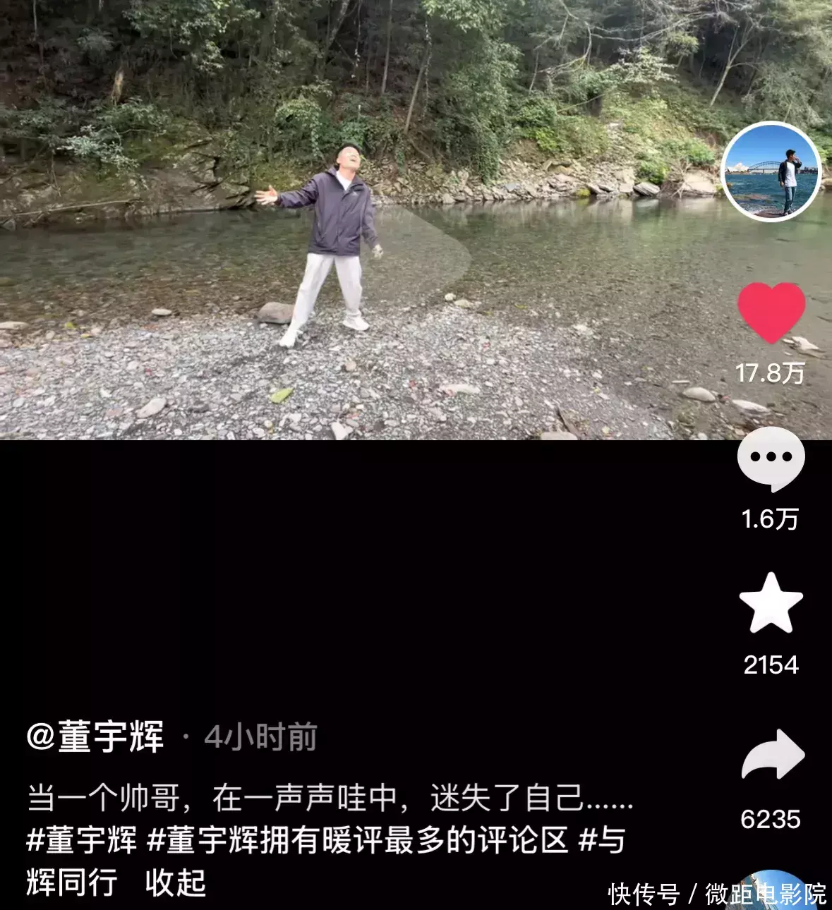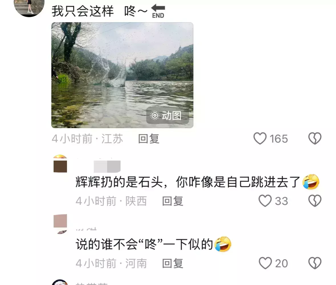 着实在归并时辰,董宇辉也更新了我方的外交账号,发布了一则视频,视频中,董宇辉又酿成了小一又友,拿着石头往河里扔,周围有一群小一又友在高声赞誉——“哇~”。(视频如下)