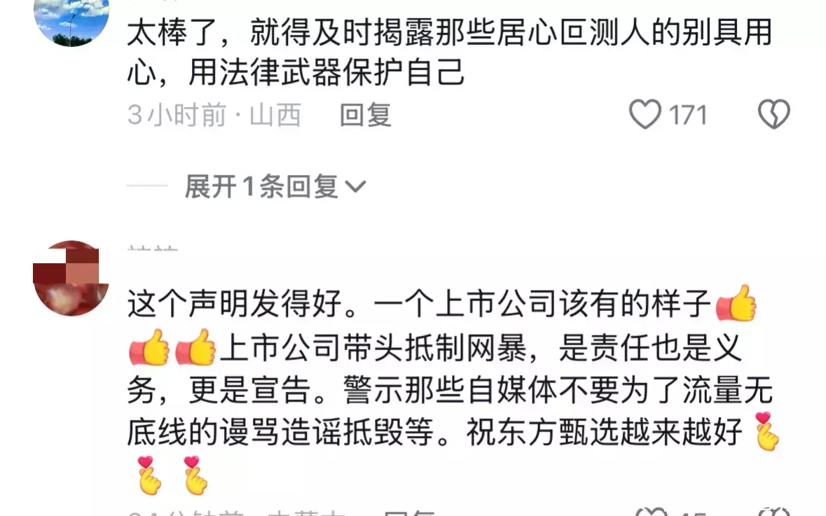 有了这个声明之后,全球也就不错放心一些了,网友纷繁在挑剔区援手东方甄选,网上谣喙满天飞,一波未平一波三折,全球王人青睐老俞和东方甄选果然太难了。