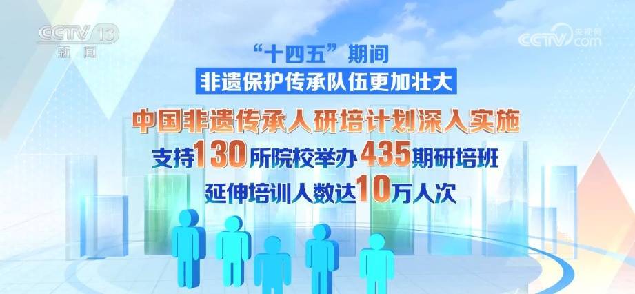 “十四五”技能,非遗保护传承戎行愈加壮大。中国非遗传承东谈主研培盘算深刻推论,复旧130所院校举办435期研培班,蔓延培训东谈主数达10万东谈主次。100余所高校设立非遗保护本科专科和关联连接标的。