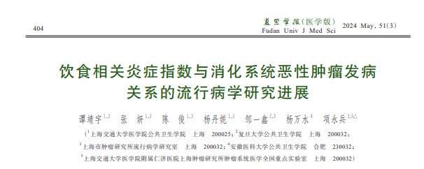 参考文件[1]谭靖宇体育游戏app平台,饮食有关炎症指数与消化系统恶性肿瘤发病 筹商的流行病学筹议弘扬,复旦学报(医学版),2024-04-07
