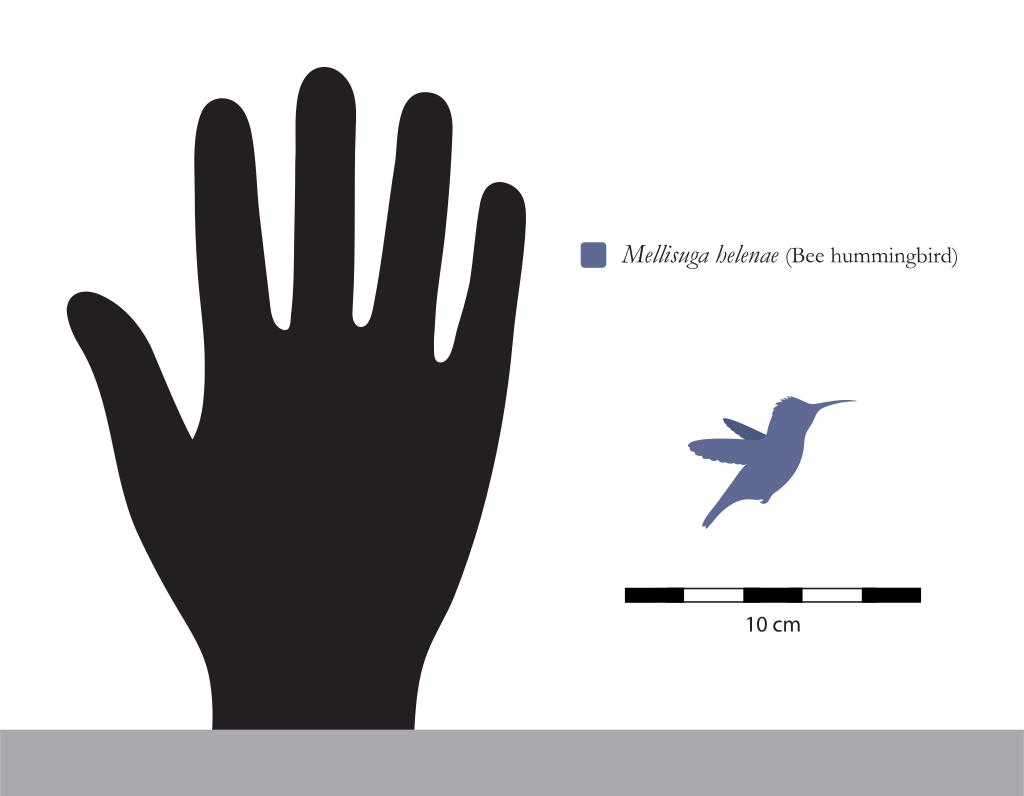 图注:吸蜜蜂鸟和东谈主类手掌的大小对比