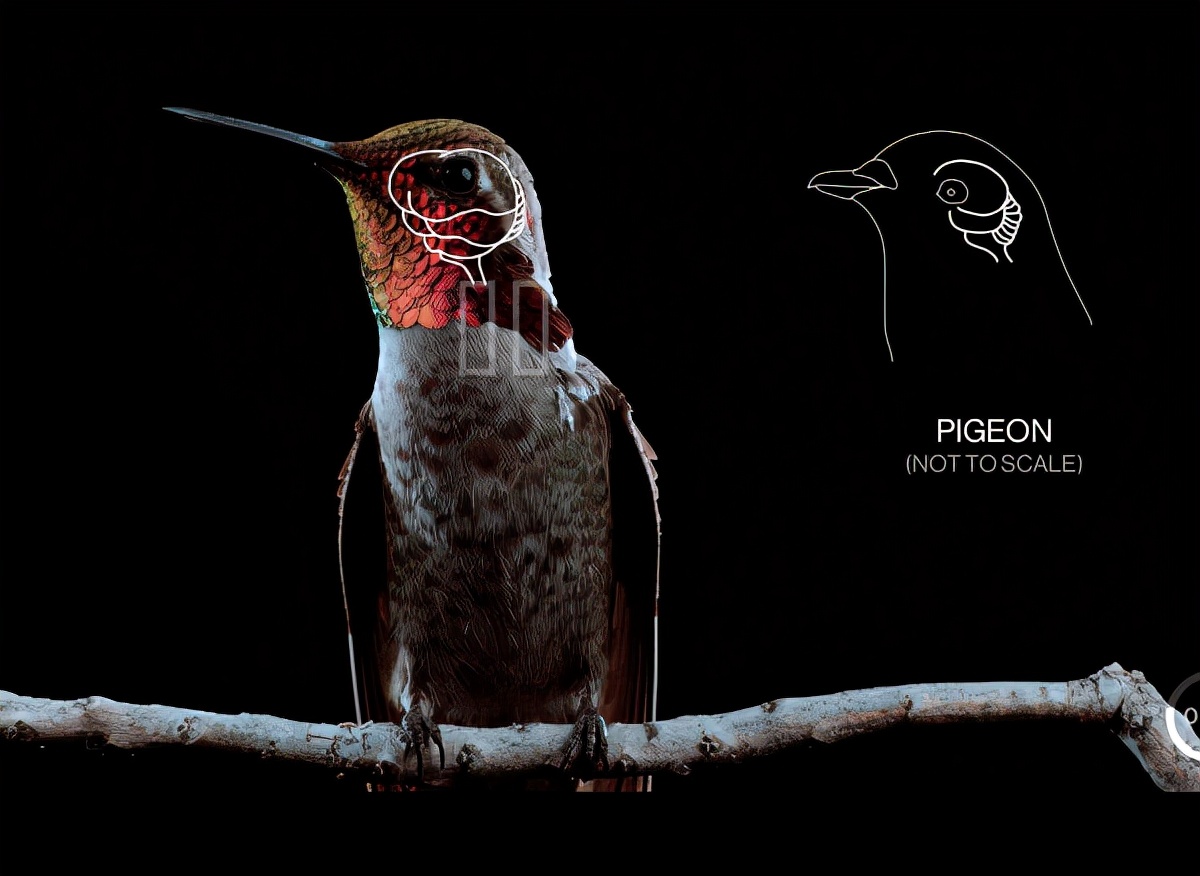 图注:蜂鸟的眼睛能分辨更多的阵势