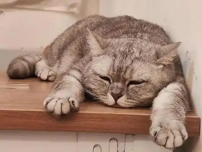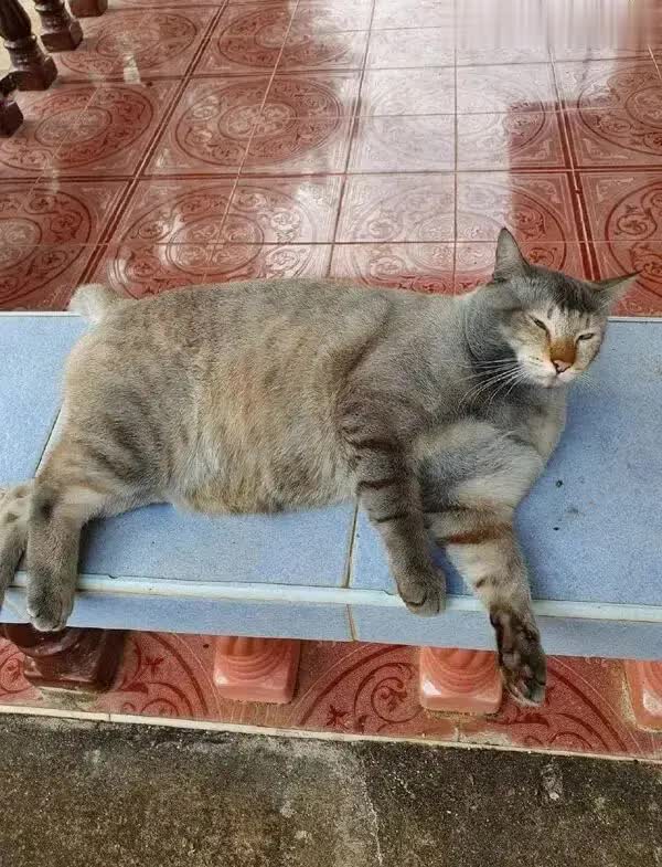 它瘫在地板上的姿势如斯透澈,仿佛一块刚被摊平的“猫饼”,连尾巴尖都懒得动一下。