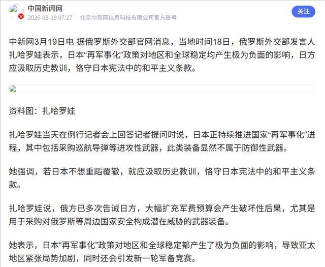 恰巧的是,就在归并天俄罗斯酬酢部发言东谈主扎哈罗娃公开点名,严厉告诫日本部署的导弹已对俄原土组成本质胁迫。中俄在短短两天内,一东一西对日本打出了一套反制组合拳。